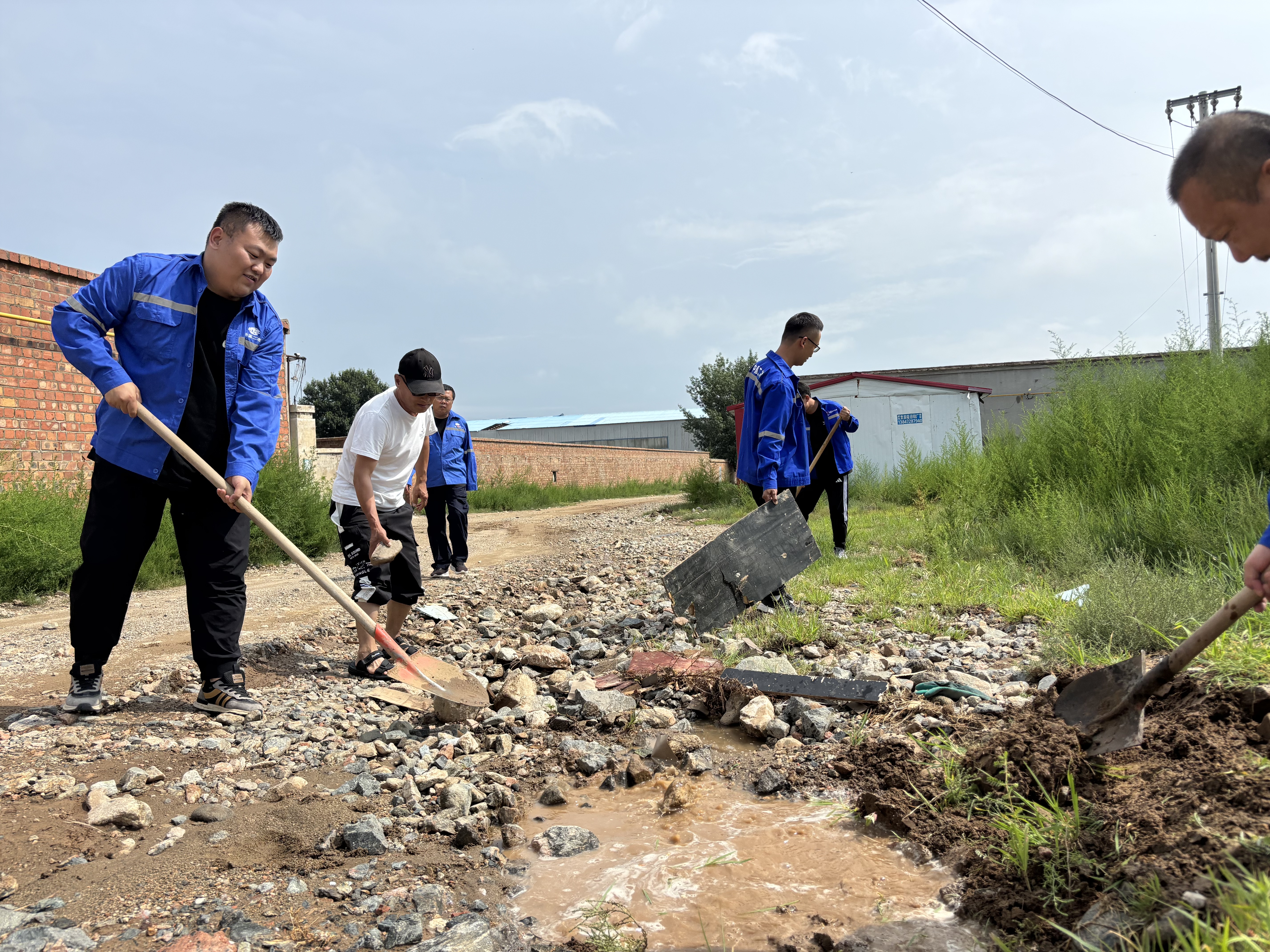 “哪里有危險(xiǎn),哪里就有黨員突擊隊(duì)身影”。連日來(lái),面對(duì)包頭地區(qū)強(qiáng)降雨,項(xiàng)目部巡查組、黨員突擊隊(duì)沖鋒在前,每天派專(zhuān)人檢查項(xiàng)目現(xiàn)場(chǎng)臨時(shí)用電、四周道路狀況,發(fā)現(xiàn)險(xiǎn)情立即報(bào)告防汛領(lǐng)導(dǎo)小組進(jìn)行整改。7月23日凌晨3點(diǎn),包頭地區(qū)再次狂風(fēng)肆虐、暴雨滂沱,項(xiàng)目部黨員身披雨衣,依舊堅(jiān)守在一線,對(duì)施工現(xiàn)場(chǎng)各危險(xiǎn)區(qū)域進(jìn)行巡查,當(dāng)黨員們深入烏蘭計(jì)六村時(shí),發(fā)現(xiàn)道路嚴(yán)重破損,影響居民出行,項(xiàng)目部防災(zāi)防汛領(lǐng)導(dǎo)小組立即與周邊居民溝通并獲得支持,組織黨員突擊隊(duì)對(duì)道路進(jìn)行了全面的修繕工作。從場(chǎng)地平整、模板安裝到混凝土澆筑、路面拉毛,每一道工序都凝聚了項(xiàng)目部的辛勤付出,平坦的道路得到了過(guò)路村民的一致好評(píng),烏蘭計(jì)六村村委會(huì)對(duì)項(xiàng)目部的辛勤付出送上了衷心感謝。