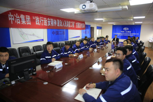 在學(xué)黨史、悟思想環(huán)節(jié),中國二冶建設(shè)者們在青年黨員代表的帶領(lǐng)下以鏗鏘之聲重溫入黨誓詞,表達(dá)了黨員們弘揚(yáng)革命精神、傳承紅色基因的堅定決心;向黨員突擊隊和青年突擊隊授旗,突擊隊代表表達(dá)了“堅決聽黨指揮,踐行初心使命,認(rèn)真履職盡責(zé),勇于擔(dān)當(dāng)作為”的決心;路橋分公司黨委為該項目黨支部贈送黨史學(xué)習(xí)教育書籍,組織全體管理人員在“重溫延安精神 守初心擔(dān)使命”條幅上簽名請戰(zhàn),力爭通過學(xué)好黨史,引導(dǎo)廣大黨員用黨的奮斗歷程和偉大成就鼓舞斗志,用黨的光榮傳統(tǒng)和優(yōu)良作風(fēng)堅定信念,切實把學(xué)習(xí)成效轉(zhuǎn)化為精神動力,以優(yōu)異成績迎接建黨100周年。隨后,路橋分公司總經(jīng)理郝海飛結(jié)合實際,為全體黨員講述了一堂《讓延安精神在新時代綻放》主題黨課,集體觀看了《延安精神 永放光芒》專題片,黨員手寫承諾卡,使全體黨員干部及職工群眾進(jìn)一步深入學(xué)習(xí)領(lǐng)會“延安精神”的精髓要義。