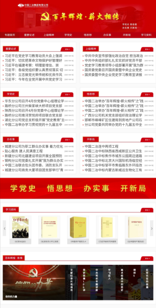 5月4日,公司黨群工作部特別策劃的“百年輝煌·薪火相傳”專題網(wǎng)頁(yè)正式上線,為深入學(xué)習(xí)宣傳貫徹習(xí)近平新時(shí)代中國(guó)特色社會(huì)主義思想,全面貫徹落實(shí)中國(guó)五礦、中冶集團(tuán)黨史學(xué)習(xí)教育動(dòng)員部署會(huì)相關(guān)要求,號(hào)召全體黨員干部學(xué)黨史、悟思想、辦實(shí)事、開(kāi)新局,不斷增強(qiáng)抓好學(xué)習(xí)教育的思想自覺(jué)、政治自覺(jué)和行動(dòng)自覺(jué),高標(biāo)準(zhǔn)高質(zhì)量完成學(xué)習(xí)教育各項(xiàng)任務(wù)增開(kāi)了新渠道。專題網(wǎng)站下設(shè)9個(gè)欄目,分別是“重要論述”“上級(jí)精神”“學(xué)黨史”“悟思想”“辦實(shí)事”“開(kāi)新局”“黨史書架”“百年輝煌·影像”“百年輝煌·百花齊放”欄目。專題網(wǎng)站旨在打造思想引領(lǐng)、政策解讀、信息傳遞、成果展示、經(jīng)驗(yàn)分享等為一體的黨史學(xué)習(xí)教育網(wǎng)上信息平臺(tái),引導(dǎo)公司廣大黨員干部將思想和行動(dòng)統(tǒng)一到中國(guó)二冶黨委部署上來(lái),切實(shí)做到學(xué)史明理、學(xué)史增信、學(xué)史崇德、學(xué)史力行,一步一個(gè)腳印扎實(shí)推動(dòng)公司各項(xiàng)事業(yè)向前發(fā)展,以優(yōu)異成績(jī)迎接建黨100周年!