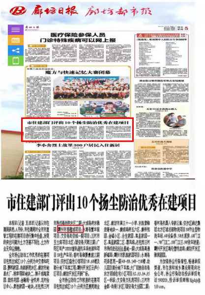 7月7日,從廊坊市住建局獲悉,中國二冶城建分公司河北霸州市國蘊城項目榮獲廊坊市揚塵防治優(yōu)秀在建項目。《廊坊日報——綜合新聞》以題為《市住建部門評出10個揚塵防治優(yōu)秀在建項目》進(jìn)行跟蹤報道,并進(jìn)行公布。