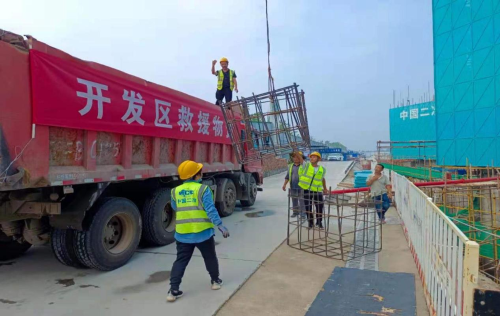 在這緊要關頭,中國二冶集團鶴壁項目部首當其沖,積極響應政府號召,迅速投入到落實防洪救災工作,踐行央企社會責任。但持續(xù)強降雨也使得鶴壁項目部施工現場受災嚴重,基坑被淹、機械設備被泡均無法使用,項目部當機立斷購置支援所需的焊機、切割機等機具,克服種種困難第一時間組織工人制作鋼筋籠,為抗洪一線送去援助。