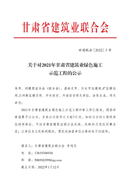 1月12日,甘肅省建筑業(yè)聯(lián)合會(huì)公布“2021年甘肅省建筑業(yè)綠色施工示范工程”評(píng)審結(jié)果,中國(guó)二冶蘭州柴家峽黃河大橋工程榜上有名,標(biāo)志著該項(xiàng)目部推進(jìn)“綠色施工示范工程”創(chuàng)建工作取得開(kāi)門(mén)紅。