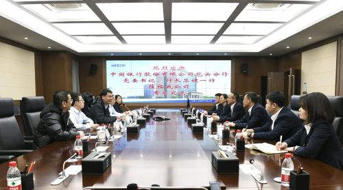 1月20日,公司總會計師范大鵬會見中國銀行股份有限公司包頭分行黨委書記、行長蘇健一行,雙方就進一步深化合作,促進交流進行廣泛而深入的探討。