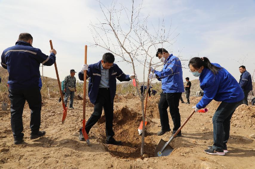草長鶯飛處,添綠正當時。4月9日,中國二冶集團直屬機關(guān)黨委、路橋分公司黨委共計70余人前往包頭市興勝鎮(zhèn)笸籮鋪村共同開展“黨建引領(lǐng)履植樹義務,志愿助力建綠色包頭”義務植樹黨建共建活動,以央企實際行動為鹿城植青綠、添春意。