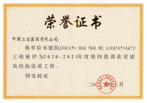 4月10日,中國(guó)二冶收到湖北省建筑工程質(zhì)量安全協(xié)會(huì)“2020——2021年度第四批湖北省建筑結(jié)構(gòu)優(yōu)質(zhì)工程”榮譽(yù)證書,由中國(guó)二冶承建的武漢東西湖文化中心項(xiàng)目獲評(píng)“湖北省結(jié)構(gòu)優(yōu)質(zhì)工程獎(jiǎng)”。