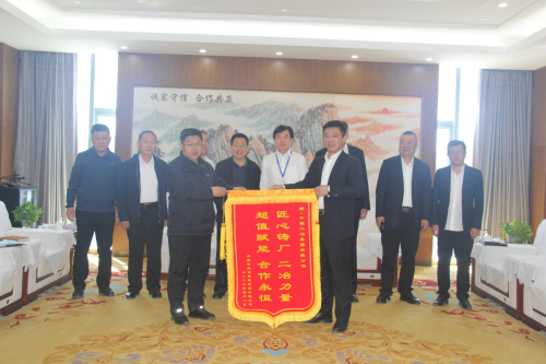 會上,楊樹仁一行代表默夙集團向中國二冶贈送錦旗,對中國二冶在默銳一期項目建設中,突破工期緊任務重等不利因素,高標準嚴要求,精益求精匠心鑄企,披荊斬棘奉獻二冶力量,優(yōu)質快速完成工程建設任務,實現(xiàn)雙方互惠互利,給予高度肯定和表揚。會前,雙方共同參觀了中國二冶榮譽展廳。
