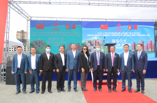 蒙方項(xiàng)目管理機(jī)構(gòu)主要領(lǐng)導(dǎo)宣布中國援助蒙古國棚戶區(qū)改造項(xiàng)目正式啟動。蒙古國相關(guān)領(lǐng)導(dǎo)在禮儀人員的引導(dǎo)下來到奠基石前為工程開工培土奠基,開工儀式順利完成。