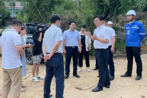 7月10日上午,湖南省永州市委副書記、市長陳愛林到中國二冶濱江新城康養(yǎng)綜合體項目湘江東路段施工現(xiàn)場調研。永州市零陵區(qū)委書記趙立平、區(qū)長龍亮陪同。