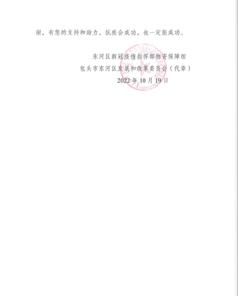10月19日,受東河區(qū)政府委派,東河區(qū)新冠疫情指揮部物資保障部、包頭市東河區(qū)發(fā)展和改革委員會聯(lián)合致中國二冶感謝信,表揚(yáng)中國二冶在這場急、難、險(xiǎn)、重的疫情防控硬任務(wù)面前,毫不退縮,不畏不懼、不言不棄,沖破困難阻礙,連夜奮戰(zhàn)不間斷,以最快的速度伸出援手,近四百余名職工沖鋒到隔離點(diǎn)改造、防疫隔離點(diǎn)項(xiàng)目建設(shè)、在建項(xiàng)目等疫情封控一線,助力東河區(qū)政府疫情防控工作取得階段性成果。特向中國二冶干部職工致以崇高敬意和衷心感謝!