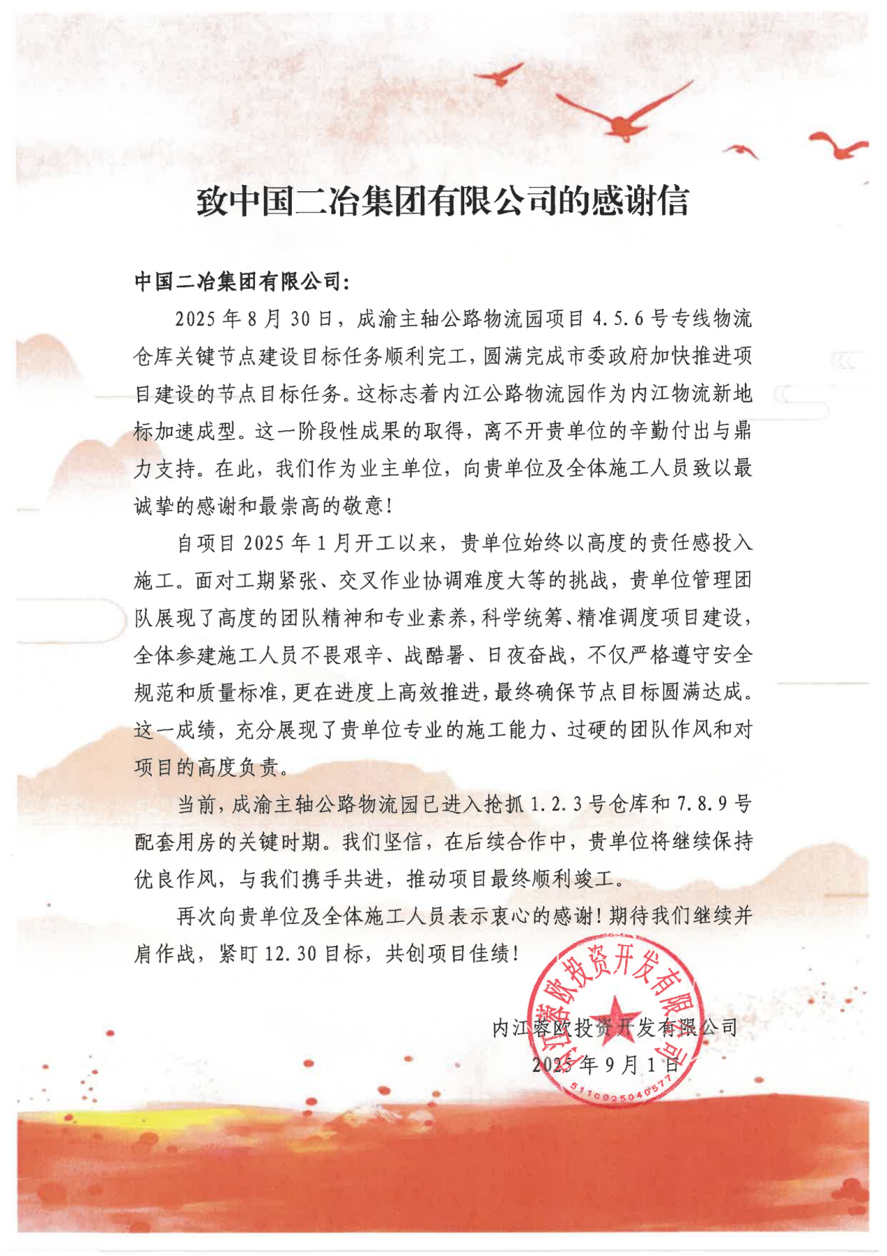 信中指出,中國(guó)二冶始終以高度的責(zé)任感投入施工,面對(duì)工期緊張、交叉作業(yè)協(xié)調(diào)難度大等困難,中國(guó)二冶項(xiàng)目管理團(tuán)隊(duì)展現(xiàn)了高度的團(tuán)隊(duì)精神和專業(yè)素養(yǎng),科學(xué)統(tǒng)籌、精準(zhǔn)調(diào)度項(xiàng)目建設(shè)全,體參建施工人員不畏艱辛、戰(zhàn)酷暑、日夜奮戰(zhàn),不僅嚴(yán)格遵循安全規(guī)范和質(zhì)量標(biāo)準(zhǔn),更在進(jìn)度上高效推進(jìn),最終圓滿達(dá)成節(jié)點(diǎn)目標(biāo)。這一成績(jī),充分彰顯了中國(guó)二冶專業(yè)的施工能力、過硬的團(tuán)隊(duì)作風(fēng)以及對(duì)項(xiàng)目的高度責(zé)任感。