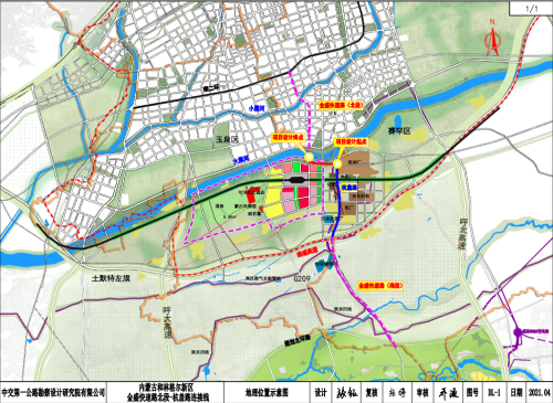 該項(xiàng)目位于呼和浩特市大黑河高架橋以南,杭蓋路以西,項(xiàng)目道路等級(jí)為城市主干路,設(shè)計(jì)速度60千米/小時(shí),全線(xiàn)機(jī)動(dòng)車(chē)雙向6車(chē)道,道路紅線(xiàn)寬度26-35米,其中35米段位于興安南路以東,設(shè)置慢行系統(tǒng),26米段位于興安南路以西,道路全長(zhǎng)1.91千米,東起杭蓋路,自東向西布設(shè),西至金盛快速路北段大黑河高架橋南橋頭。設(shè)置高架橋橋梁1 座,全長(zhǎng)426.5米,設(shè)置燈控平交口2處。起點(diǎn)與現(xiàn)狀杭蓋路采用T 型燈控平交,終點(diǎn)以高架橋形式順接北段橋頭。